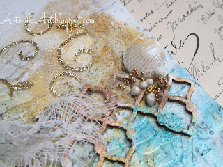 złota (13arts, Stamperia). Brązy okazały się dość chłodne, więc przetarłam